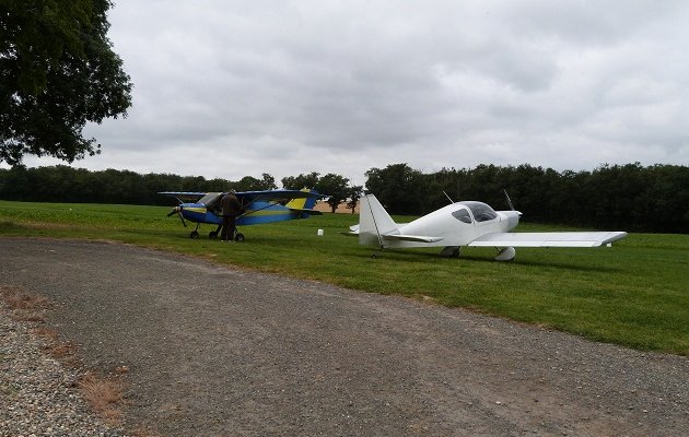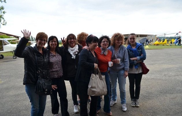 Après un « baptême » découverte pour nos hôtes Hervé et Anne, nous décollons pour Condom LFID. Je propose un petit détour au-dessus de « La Hitte », notre propriété familiale, puis nous arrivons vertical terrain vers 15h30. Nous parquons nos machines devant les hangars. Nos giros attirent du monde, les questions fusent… Une belle photo de groupe devant les machines immortalisera notre passage à Condom.