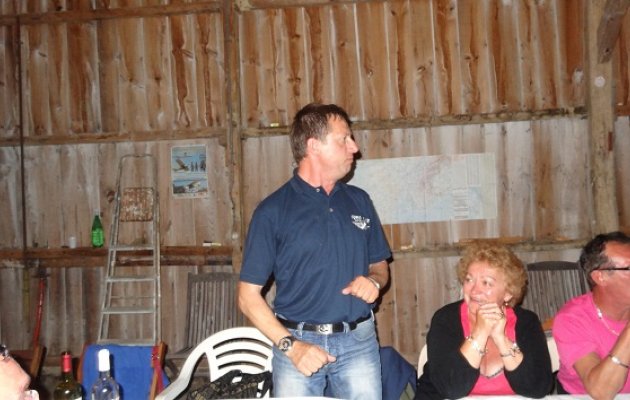 Les Gascons nous servent du melon et jambon, un classique, du magret accompagnés d’haricots verts (en purée ?) puis une tarte aux pommes pour terminer le repas, avant le café. Et moi qui avais annoncé un repas gastronomique !!! Un peu déçu en pleine Gascogne, pays de la bonne « chair ». Le DJ du Club allume ses spots et diffuse les premiers tubes… Lorsque qu’arriva la Danse des Canards, Eric ne put s’empêcher de m’entrainer (de mon plein gré, je l’avoue !) dans une chorégraphie aussi ridicule que comique. Mais l’ambiance était là, et grâce au GyroClub. Les serviettes ont tourné, les têtes un peu aussi ! Raisonnablement, vers 23 heures, chacun se dirige vers son « toit » : les uns dans leurs camping-cars, les autres sous la tente ou dans le gîte.